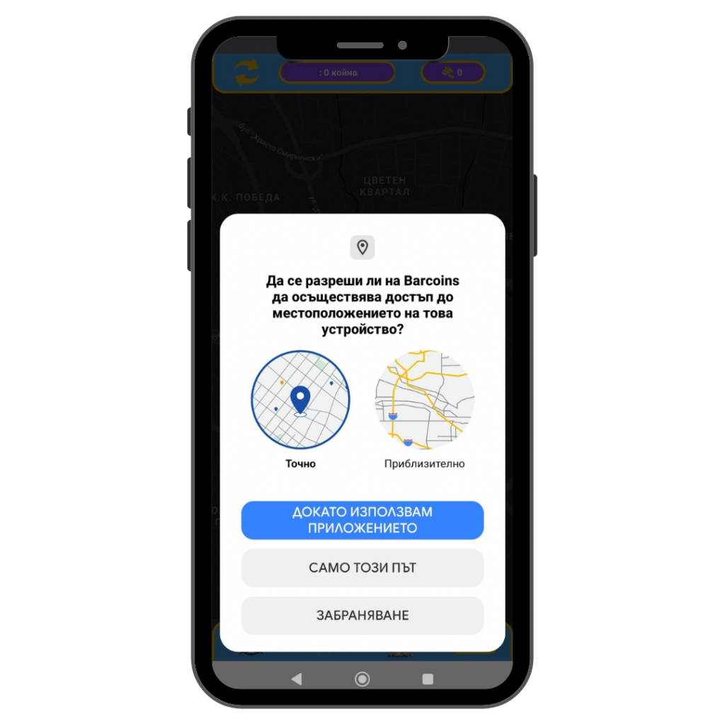 Разрешете на BarPin да осъществява достъп до местоположението на устройството.