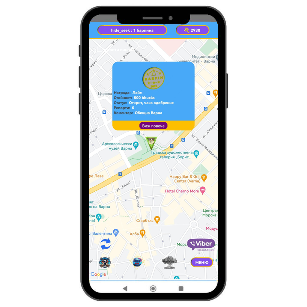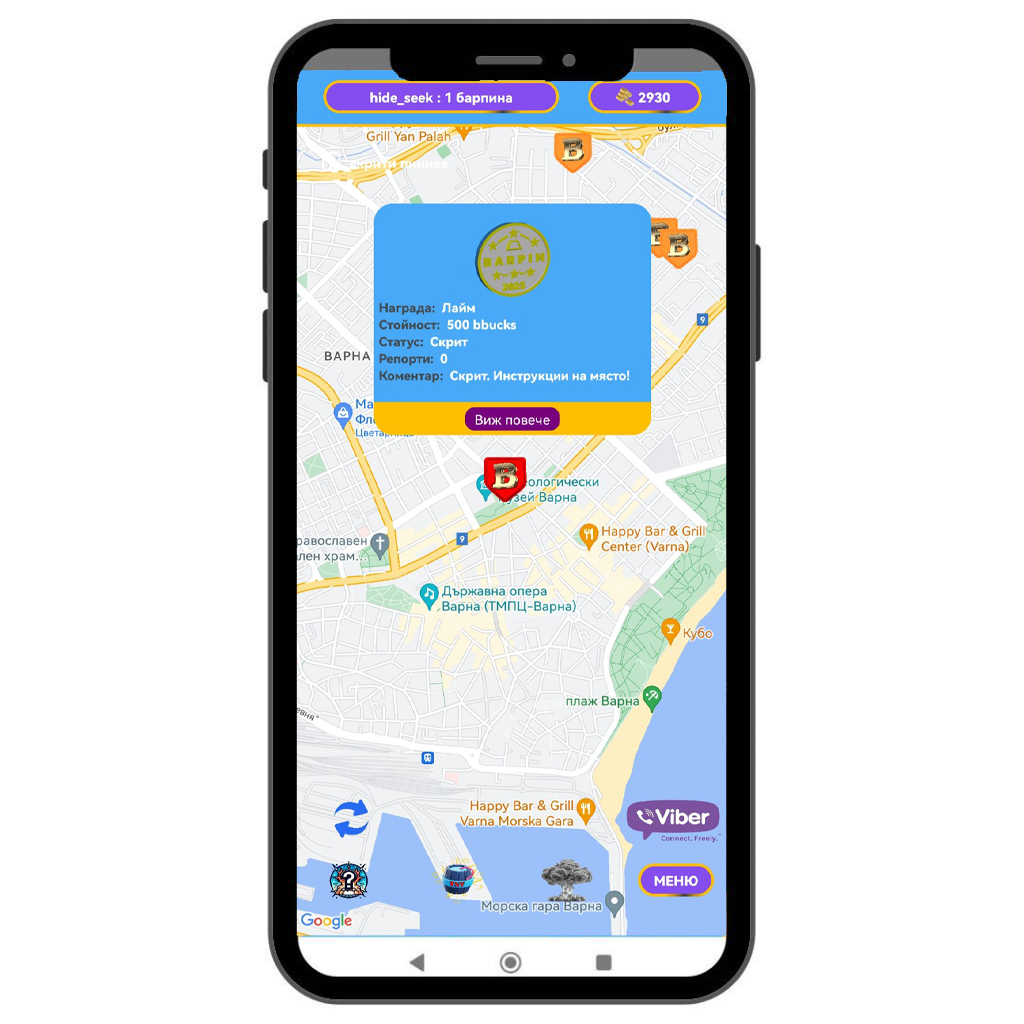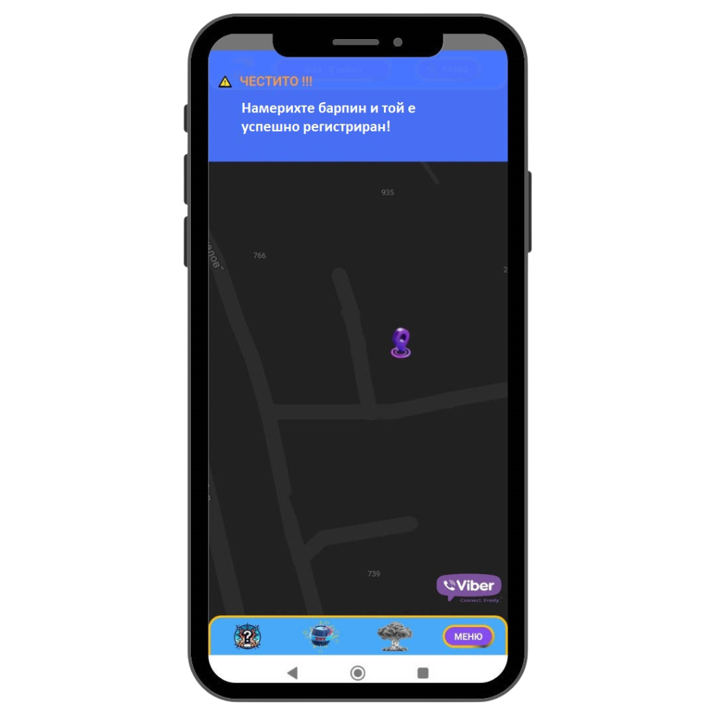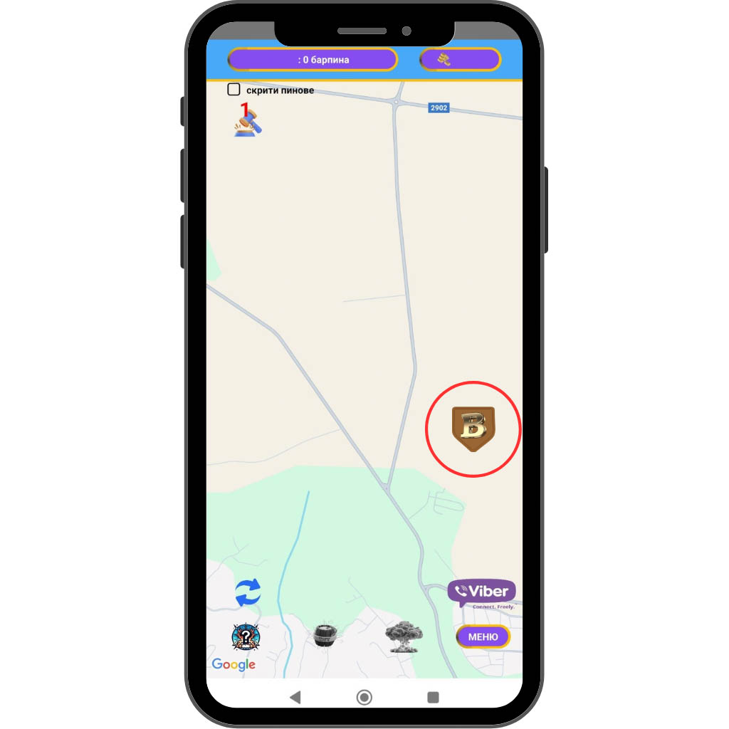 Ако в близост до вас има скрит BarPin, той ще се визуализира на картата в приложението.