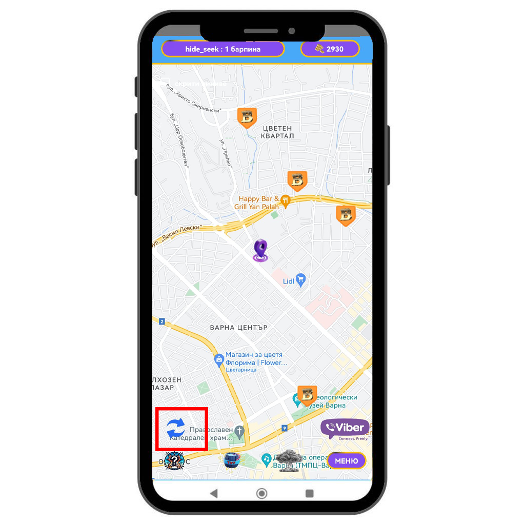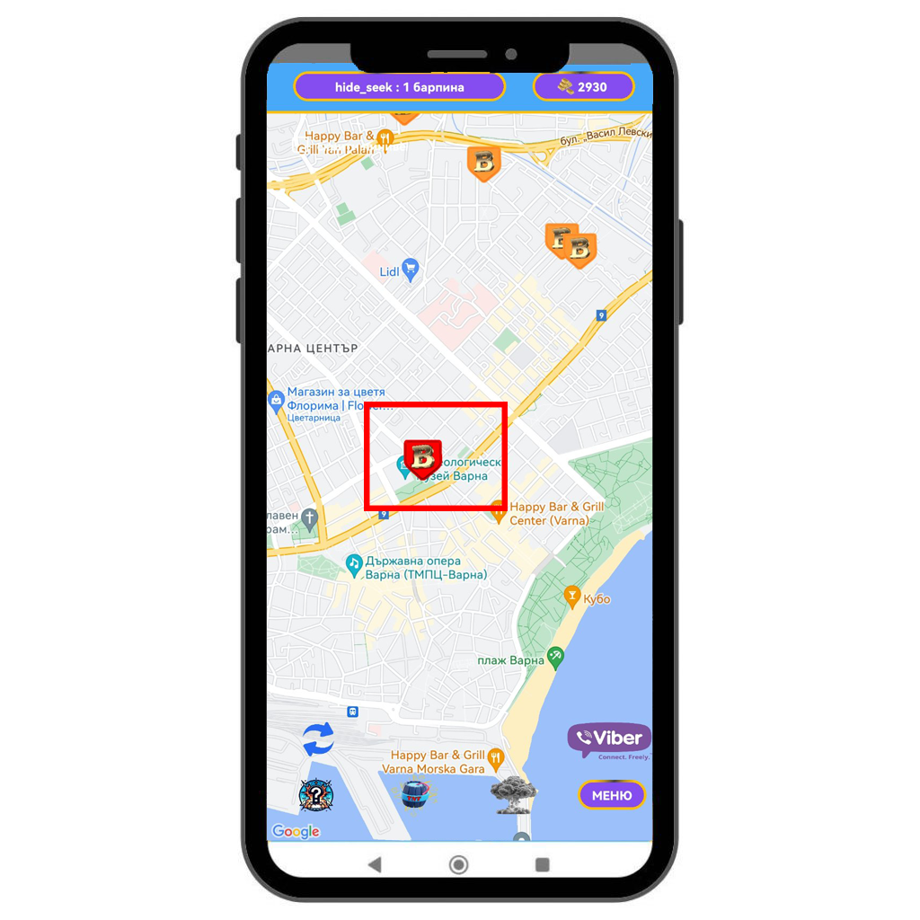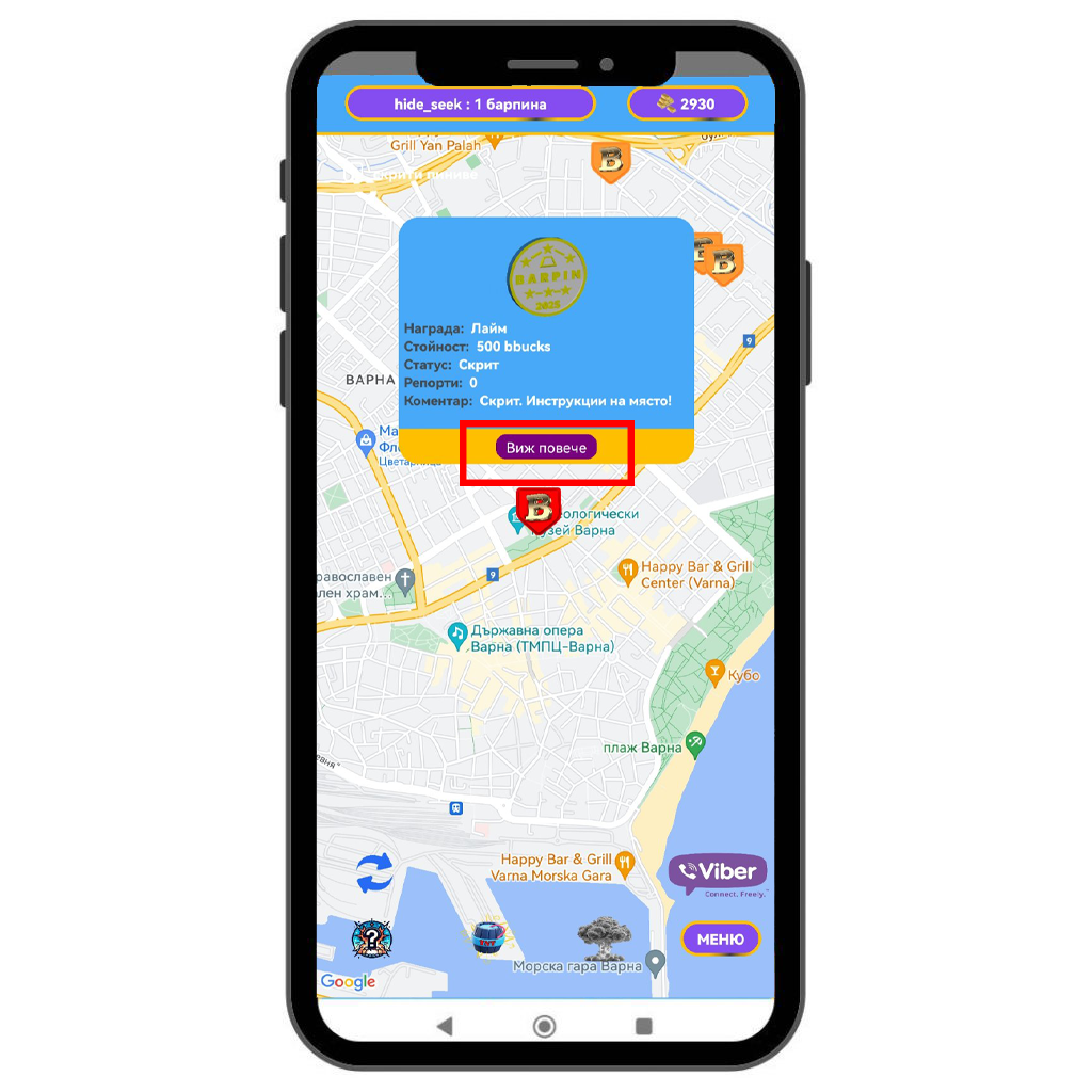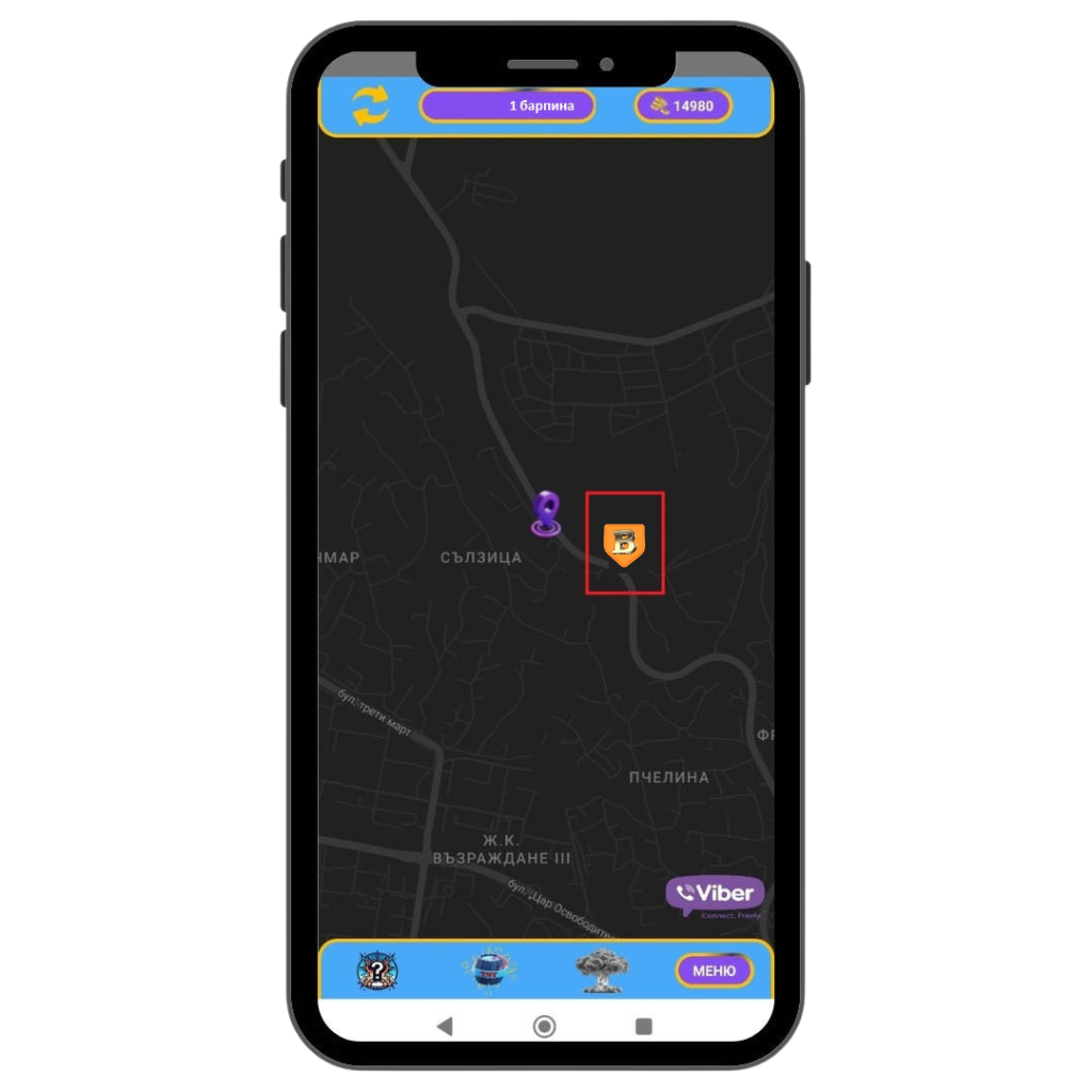 Ако в близост до вас има скрит BarPin, той ще се визуализира на картата в приложението.