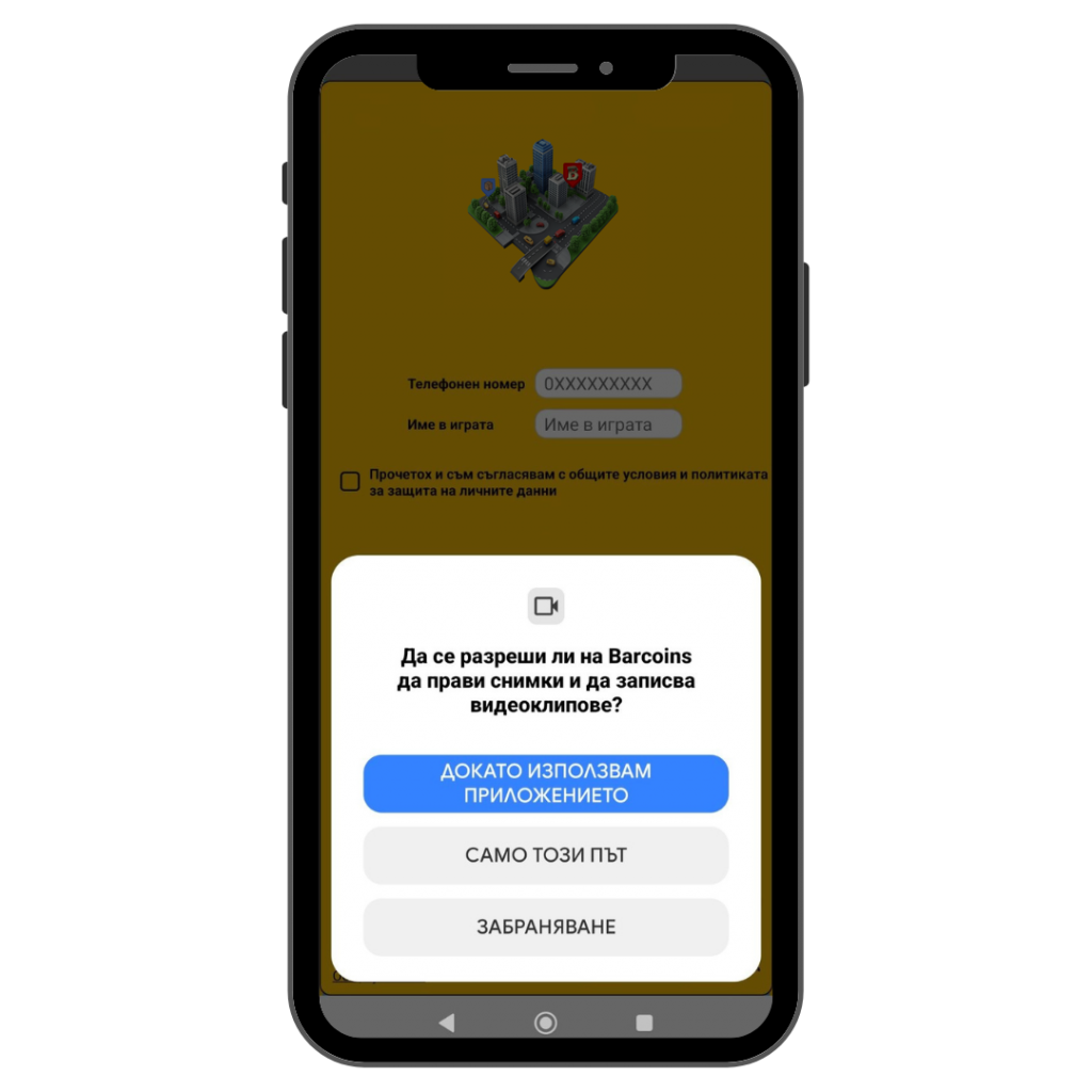 Разрешете на BarPin да прави снимки и да записва видео клипове.