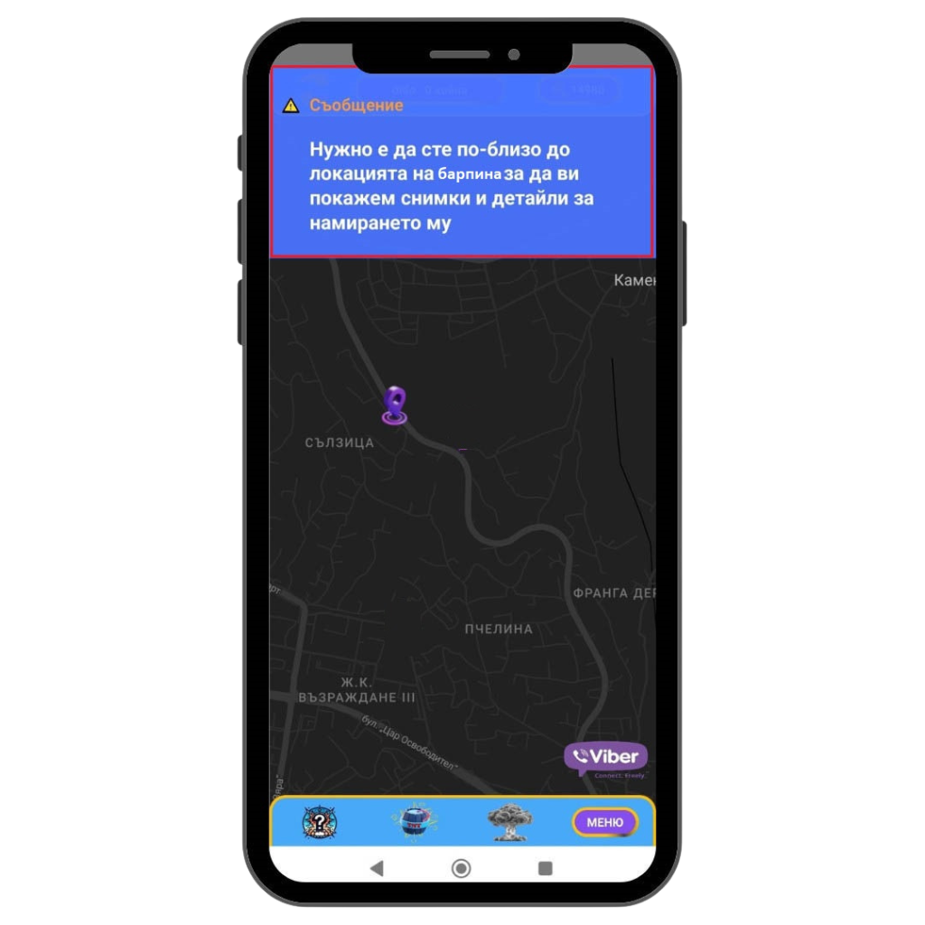 Ако в зоната, в която се намирате има мина BarPin , ще ви се визуализира следното съобщение: “Успешна детонация, открит е барпин. Проверете на картата.“