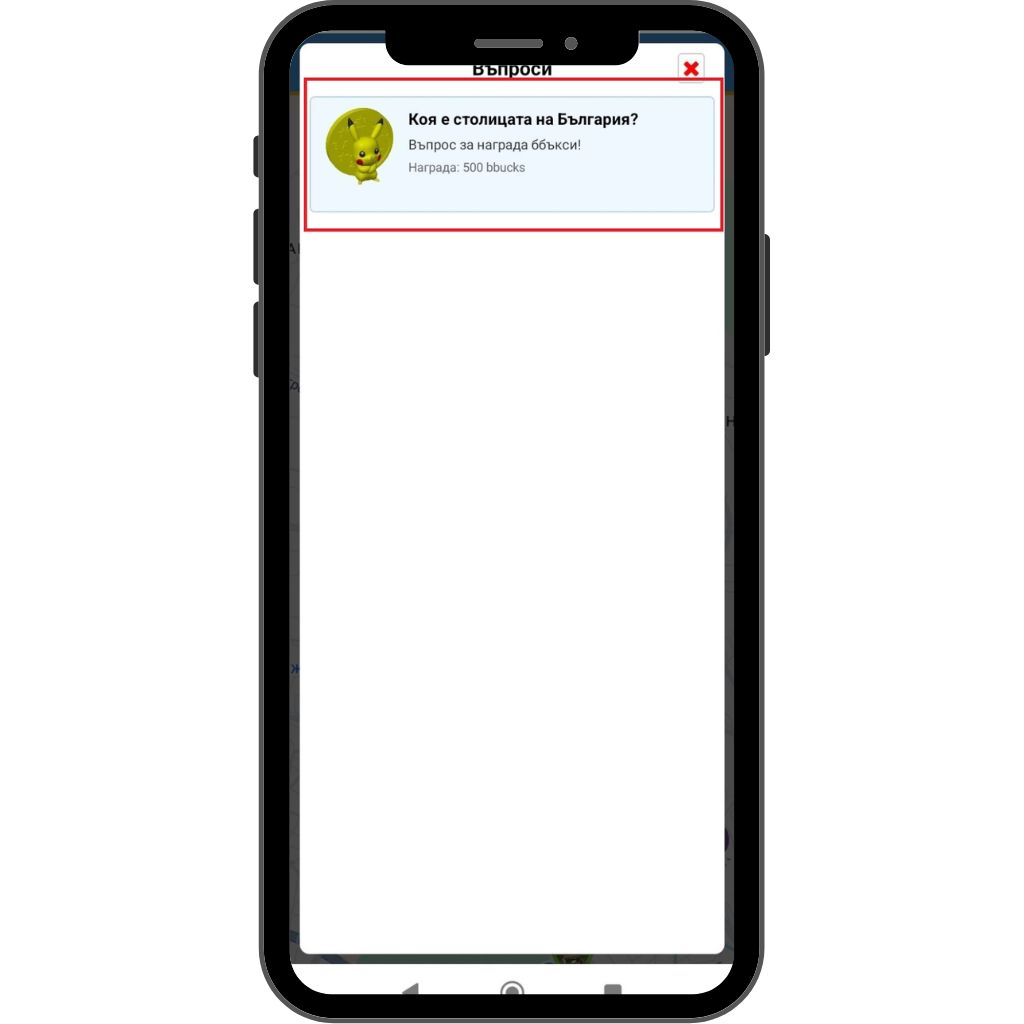 Бутон за различни видове игри и задачи. За намиране на дадена локация, снимане на даден обект по подобие на мисиите, отговаряне на гатанки и въпроси и други разнообразни евенти , от които ще печелите ббъкси и локация на барпин.