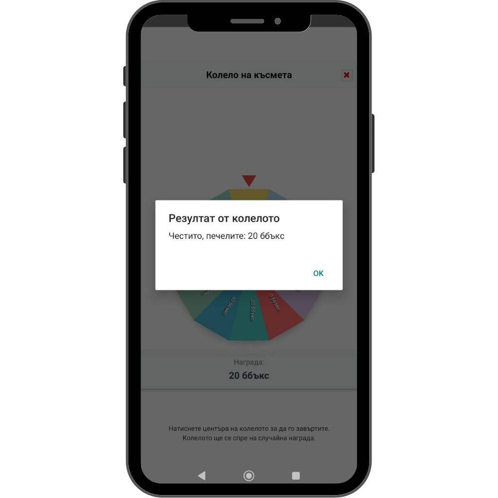 При натискане на бутона се отваря „Колелото на късмета“.